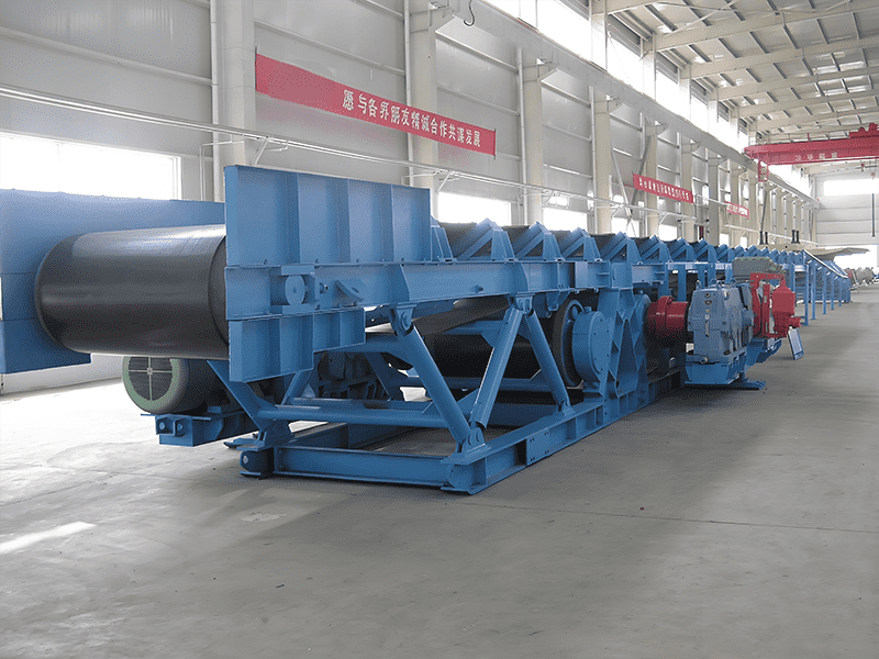• 輸送帶運行:皮帶機(jī)的核心部件是輸送帶,其由多層耐磨橡膠或塑料層組成,能夠抵抗拉力和沖擊力。輸送帶經(jīng)過驅(qū)動裝置(通常是電動機(jī))的驅(qū)動,使得輸送帶連續(xù)運行。